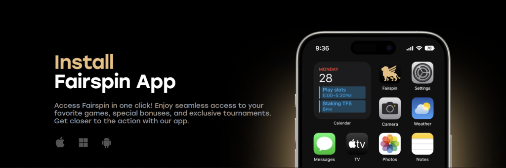 Habár nincs elérhető Fairspin alkalmazás Androidra és iOS-re, a mobil verzió minden funkciót biztosít, amelyekkel akadálytalanul játszhatsz útközben: